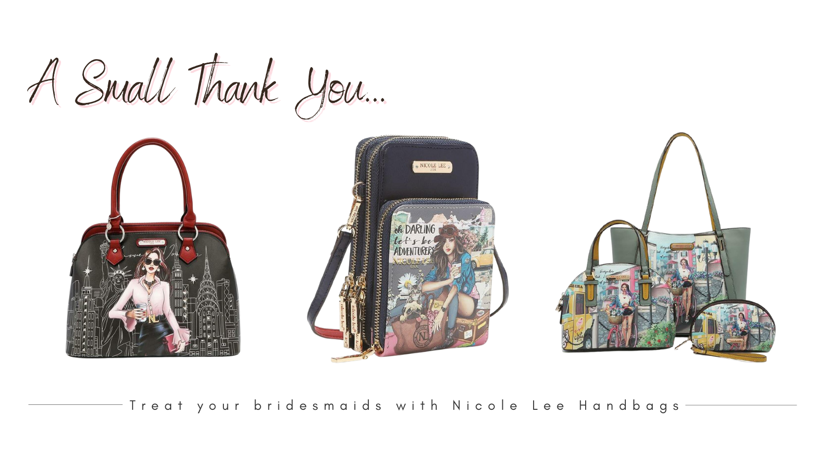 Vibrant, illustrative and designed for convenience, these Nicole Lee handbags, backpacks, satchels, coin purses and wallets are the perfect thank you gift from a bride to her bridesmaids, or as a bridal shower gift for the bride-to-be! You can easily re-wear a bridesmaid dress, wedding outfit or cocktail dress as a dressed-down casual look with Ameise luxe sneakers and a Nicole Lee handbag.