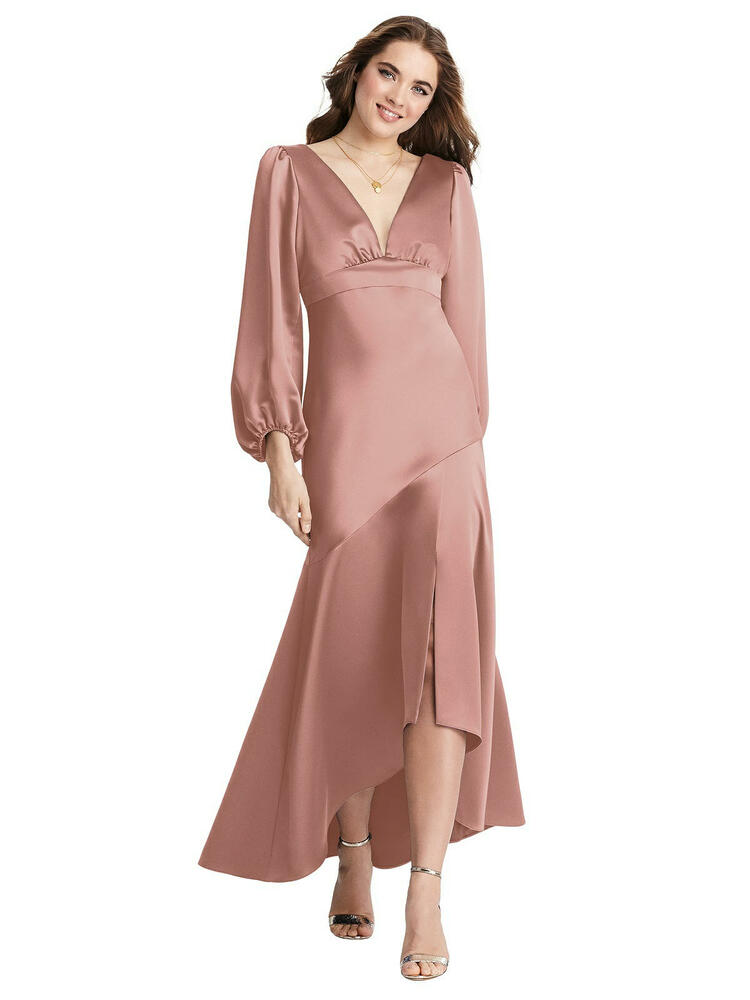 The feminine Teagan Dress has a split feature, a deep V-neck, and a drop waist. The asymmetric seaming enhances the high-low skirt superbly. For a polished appearance, pair it with strappy heels and a stunning clutch. The Teagan Dress in a rose colour emphasizes sophisticated rustic, emphasising the flowing lux charmeuse that appears like the touch of a petal.