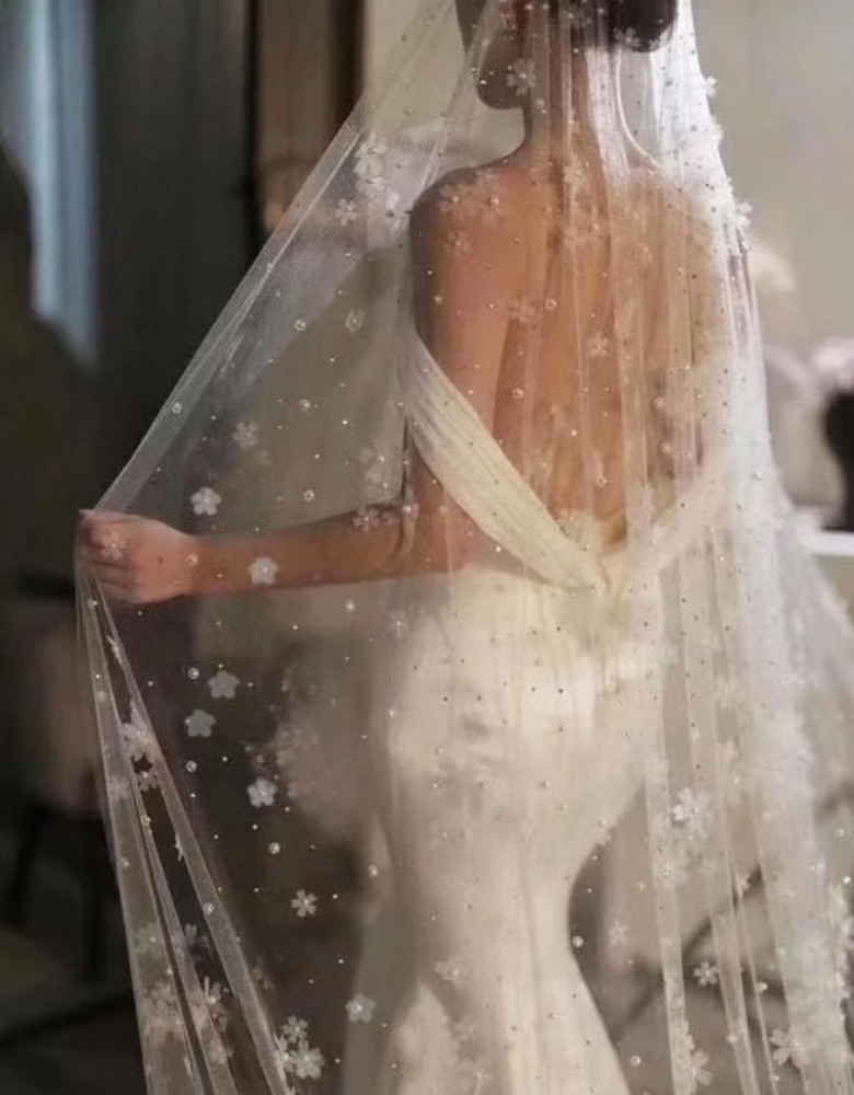 1/Pearl Flower Wedding Veil 3.5M